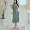 Váy (Đầm ) Dáng Xòe Đai Eo Kẻ caro cổ sen cao cấp